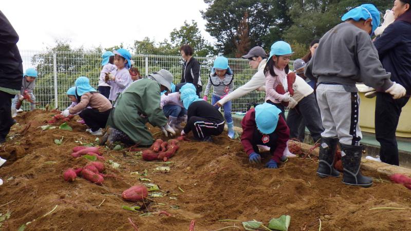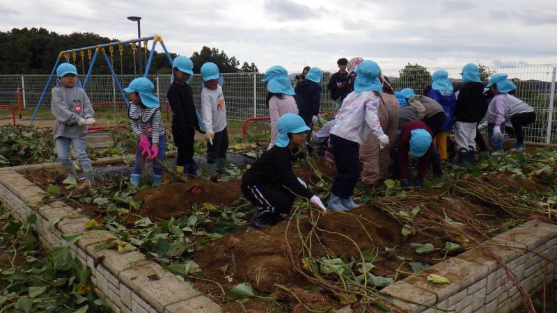 年長児が春から大切に育ててきたさつま芋を、JA新みやぎ栗っこ女性部瀬峰支部の方に教えてもらいながら掘りました。今年は大きなさつま芋がたくさん収穫でき大豊作でした。