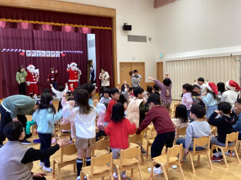 おゆうぎ会で披露したダンスをみんなで踊ったり、社会福祉協議会瀬峰支部からサンタクロースがきて、一足先にクリスマスプレゼントをいただいたりし、楽しい集会になりました。