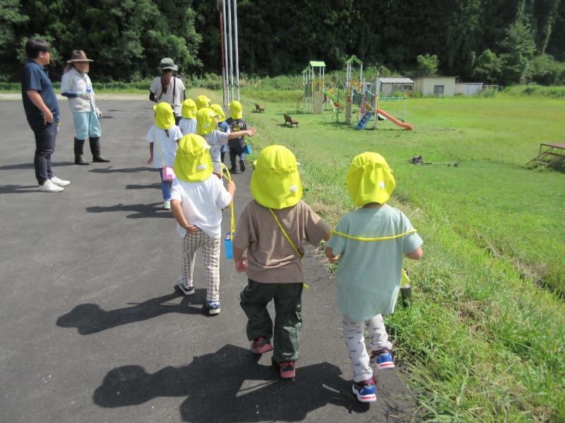 - 身近な環境に興味をもって関わる子どもの育成を目標に、地域の自然を生かした活動を取り入れ、直接体験や感動体験を通して、新たな発見をし、友達と一緒に遊び方を工夫しながら身近な環境への興味を広げていけるように促している。