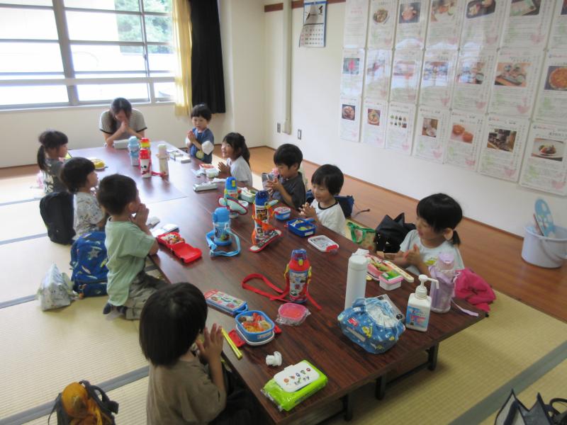 おうちの方に作っていただいたおいしいお弁当を食べて、みんなうれしそうでした。