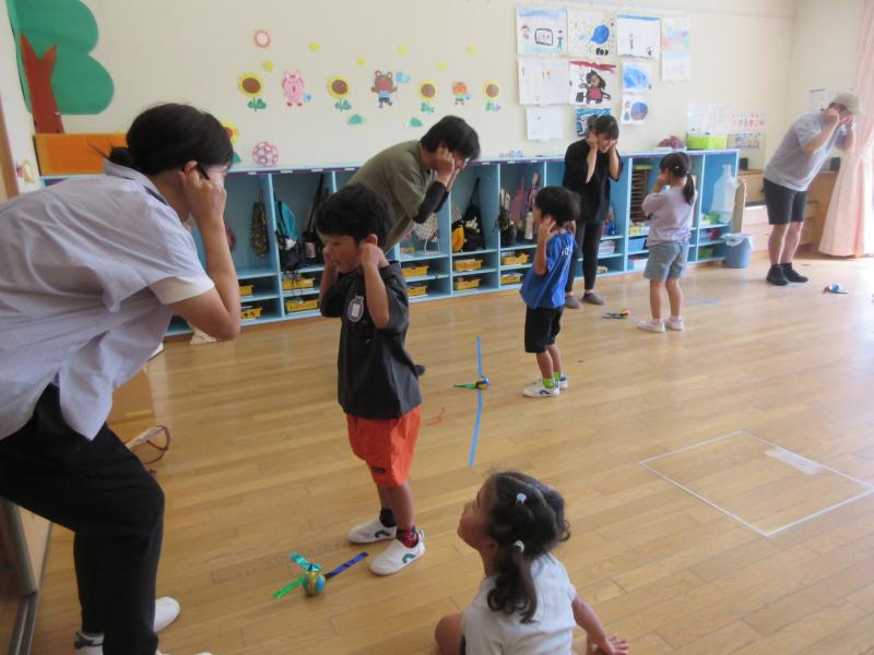 保育参観では、親子の触れ合いを取り入れた運動遊びを行いました。