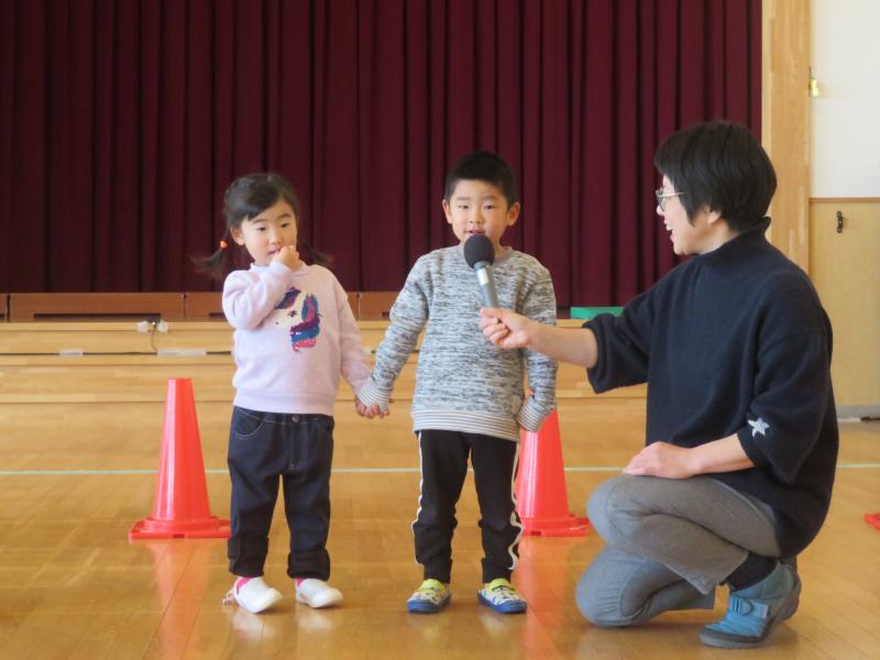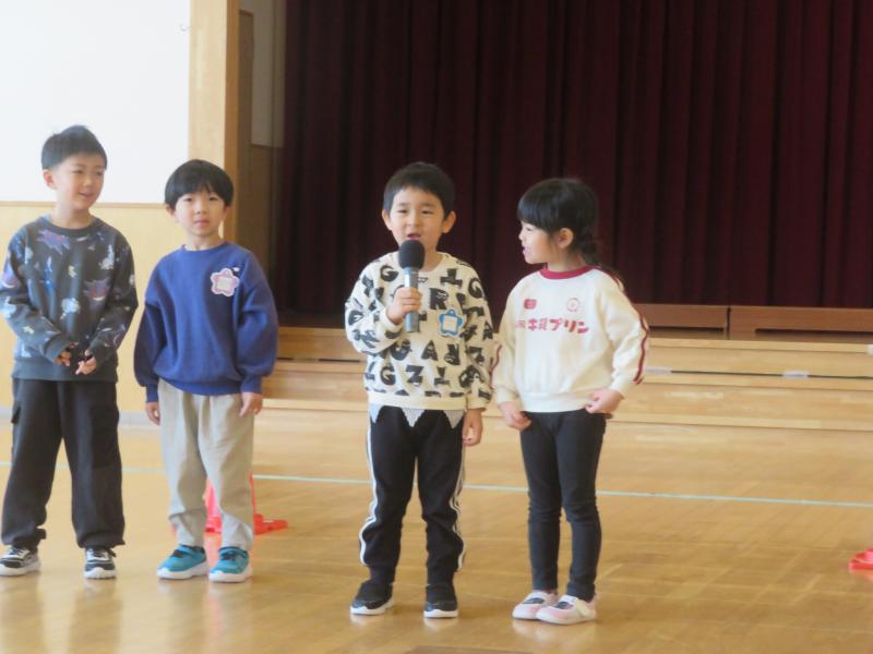 「おじいちゃん、おばあちゃんの家に泊まった」「あかちゃんがうまれて、うれしかった」「なわとびをして楽しかった」「こまをしてたのしかった」など、冬休みの思い出を発表してくれました。